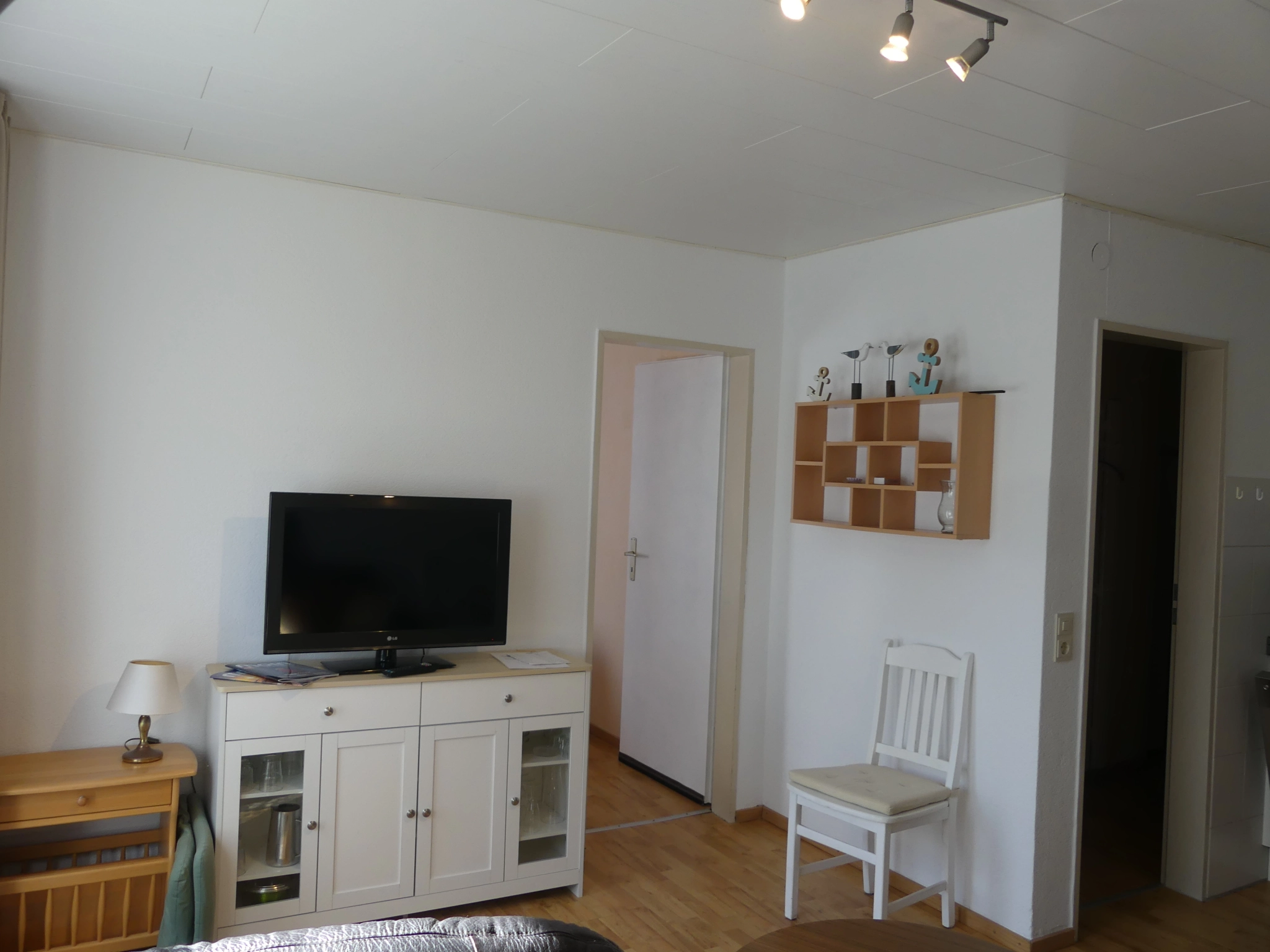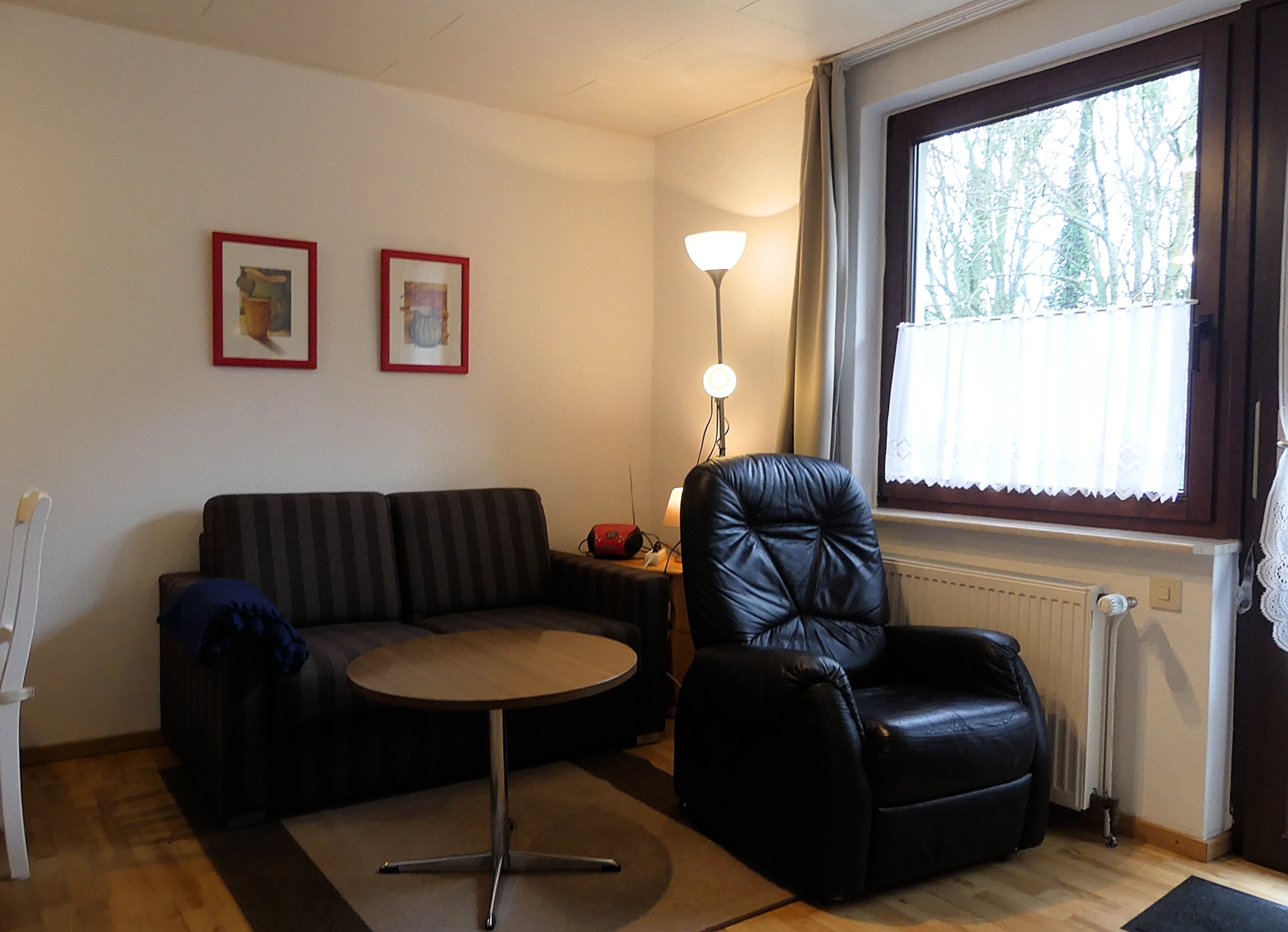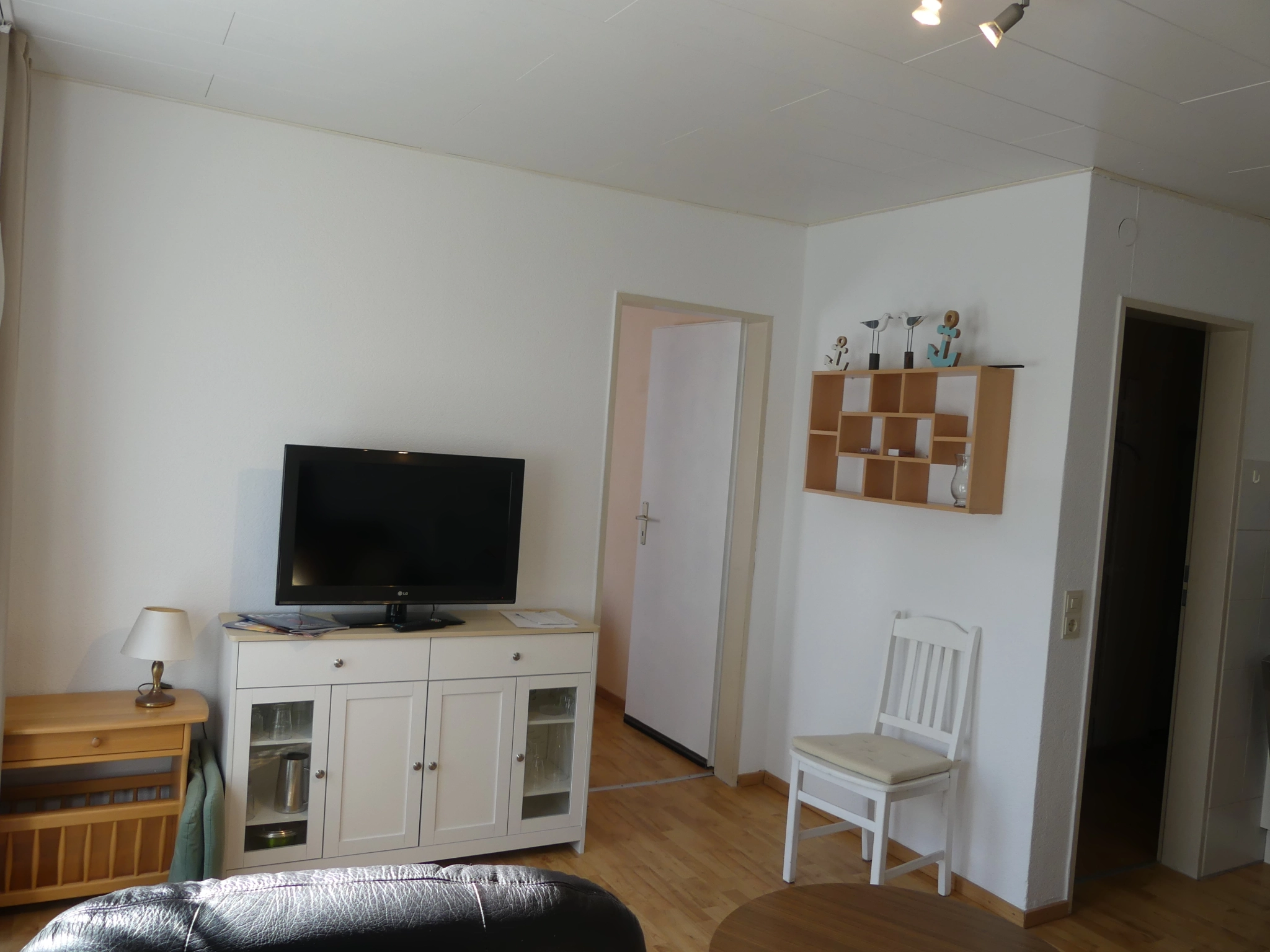 Die Wohnung liegt im Erdgeschoss, ist ca. 45qm groß, für 2 Personen ausgelegt, und hat einen separaten Eingang. Sie besteht aus einem Wohnraum mit Küchenzeile und Esstisch, einer Sitzecke, einem Schlafzimmer mit Doppelbett, sowie einem Badezimmer mit Dusche und WC.